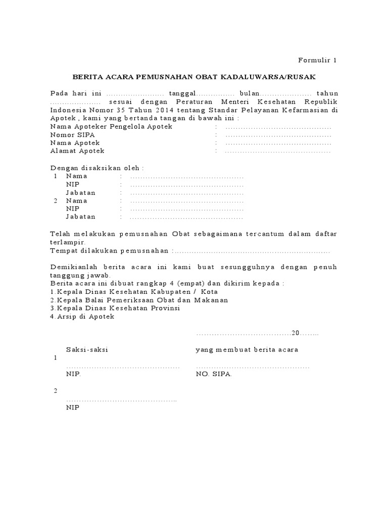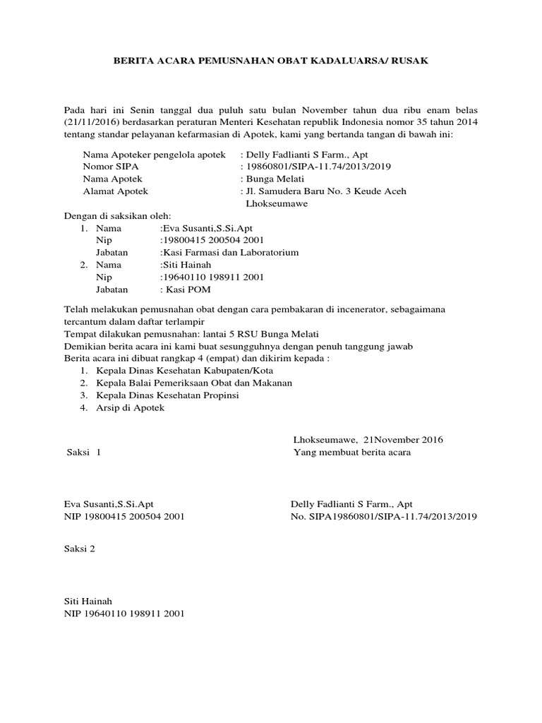 Refference: Contoh Surat Permohonan Pemusnahan Obat